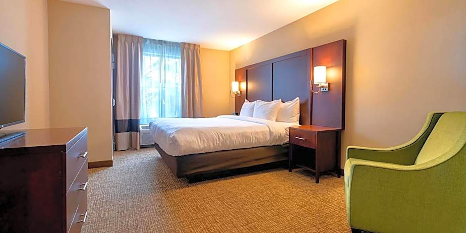 This suite features a fireplace. The suite's kitchenette, which has a refrigerator and a microwave, is available for cooking and storing food. The suite features air conditioning, a tea and coffee maker, a seating area, heating and a TV with cable channels.